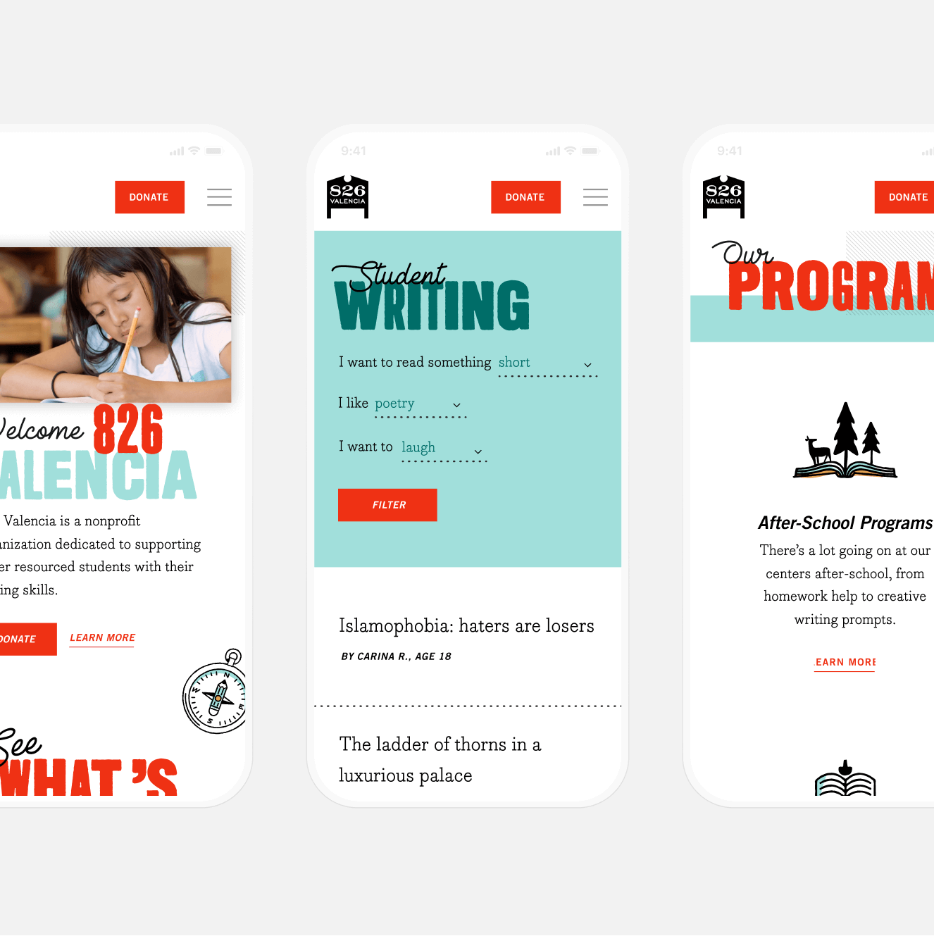 826 Valencia is a San Francisco based nonprofit that helps under-resourced students develop their writing skills and channel their creativity through free educational programs. We embraced the whimsical adventure of the 826 tutoring centers and applied it to all things digital.