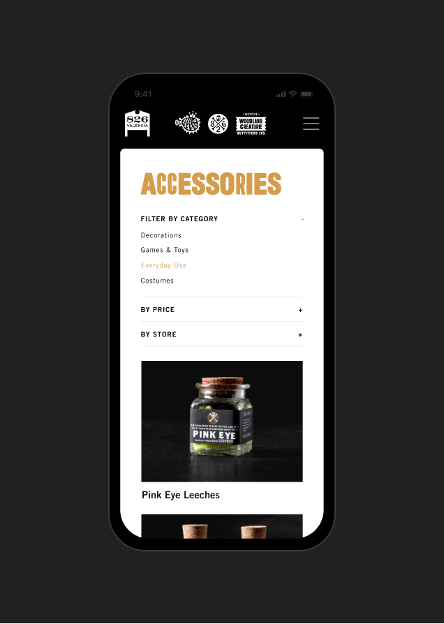 Each 826 location has its own wildly imaginative theme that immerses students into a whole new world of writing along with a magical storefront magic. We worked to infuse this spirit into their ecommerce website, focusing in on ease-of-use and usability.