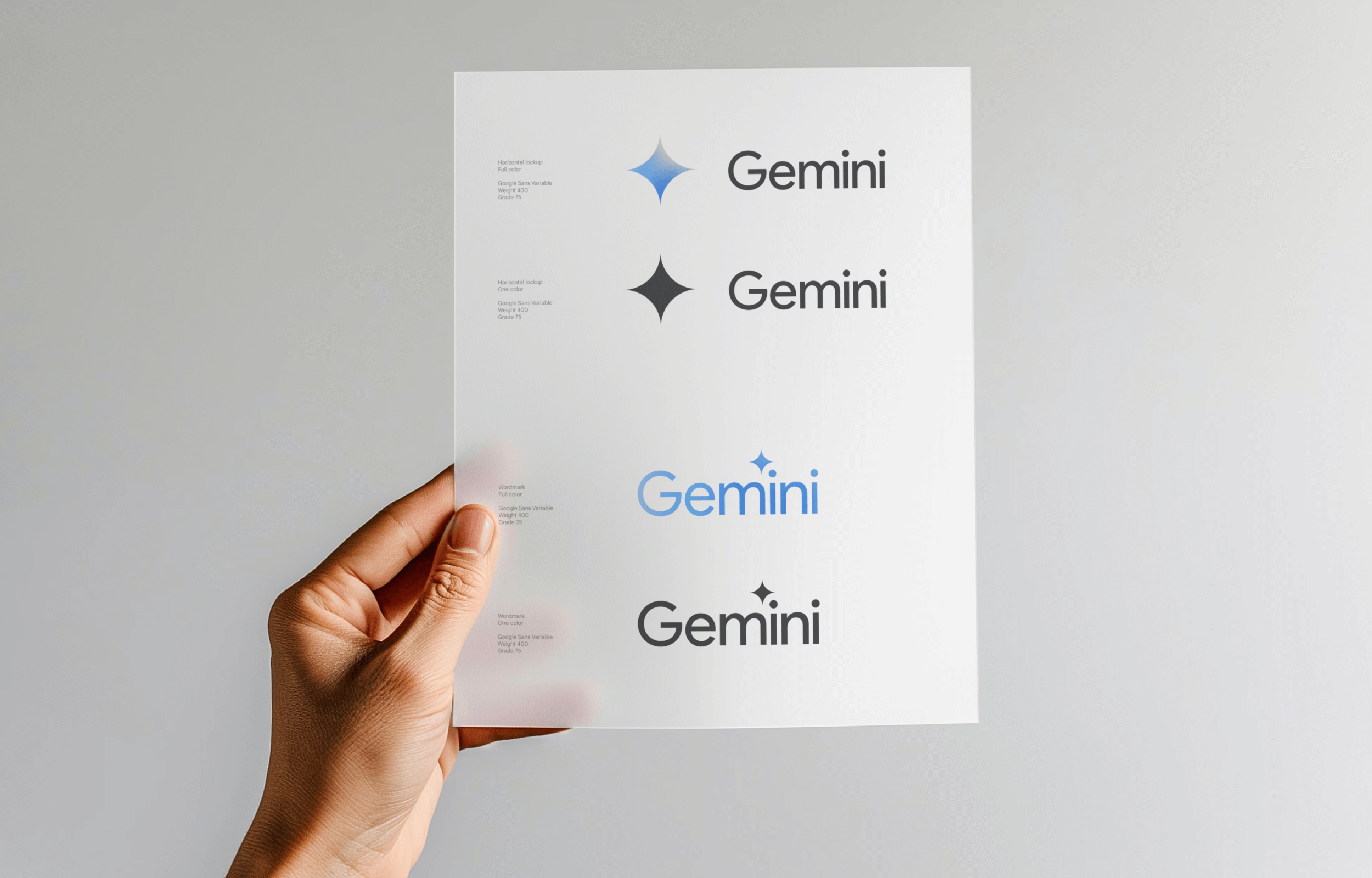 Often associated with AI in the broader industry space, the spark within our logo comes to represent the north star, positioning Gemini as a guiding light in the field of AI. Positioned next to the dot of the first “i” in Gemini, the spark creates a twin set, referencing the twin stars of the Gemini constellation. Carrying complex meaning, the simple mark also fits naturally into Google's existing AI visual language.