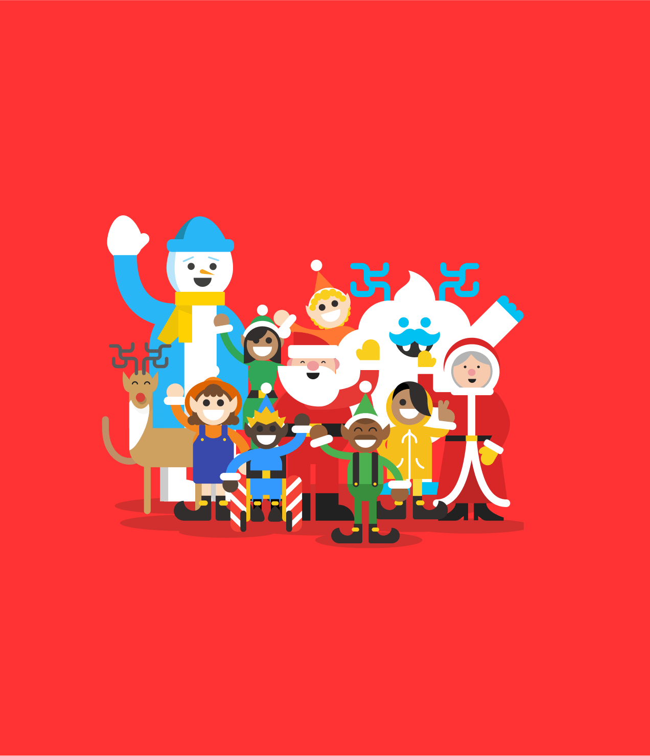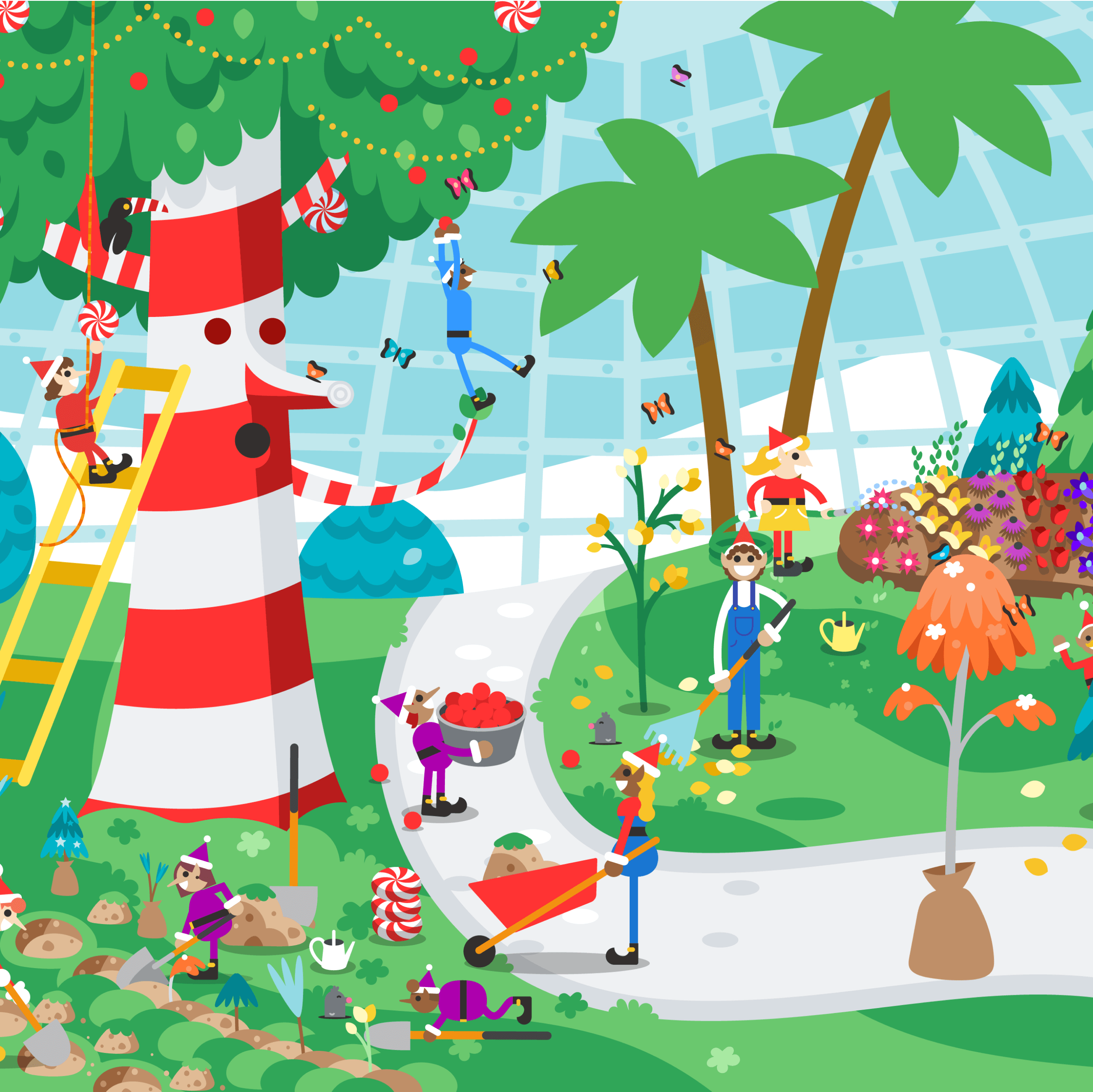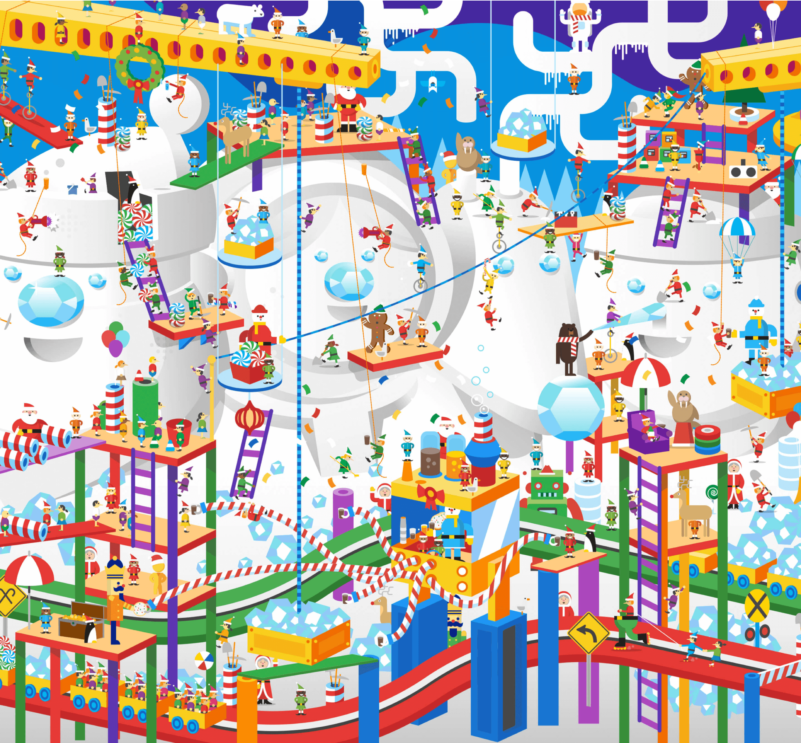 From slip-sliding penguins to dancing elves to Mrs. Claus herself, the everyone is here! As you explore the village you’ll find Santa’s family and friends frolicking about, with representation from all ages, backgrounds, body types, skin colors, abilities and gender expressions.